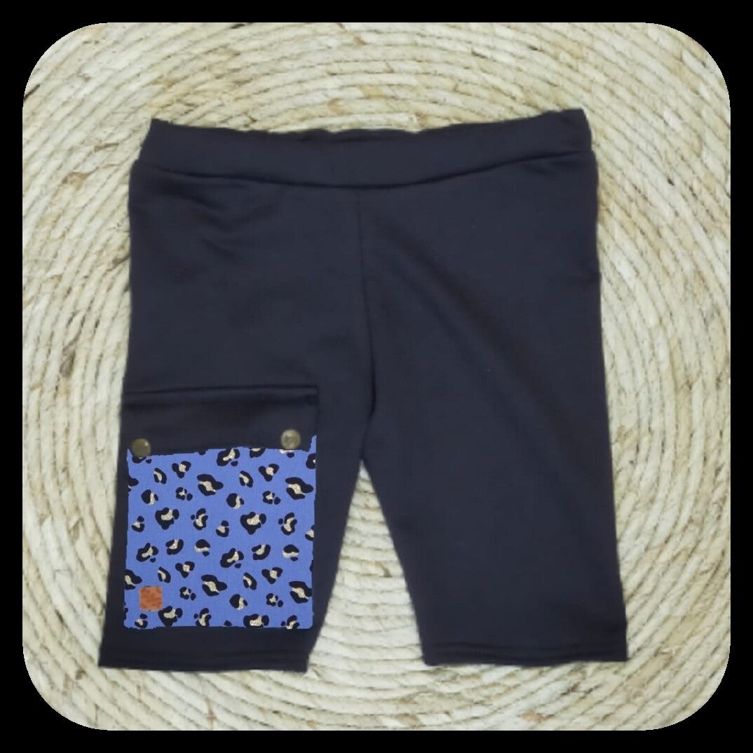 Korte broek zwart met zak panter blauw
